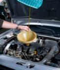 Next, use your funnel to pour the new oil into the oil filler hole.